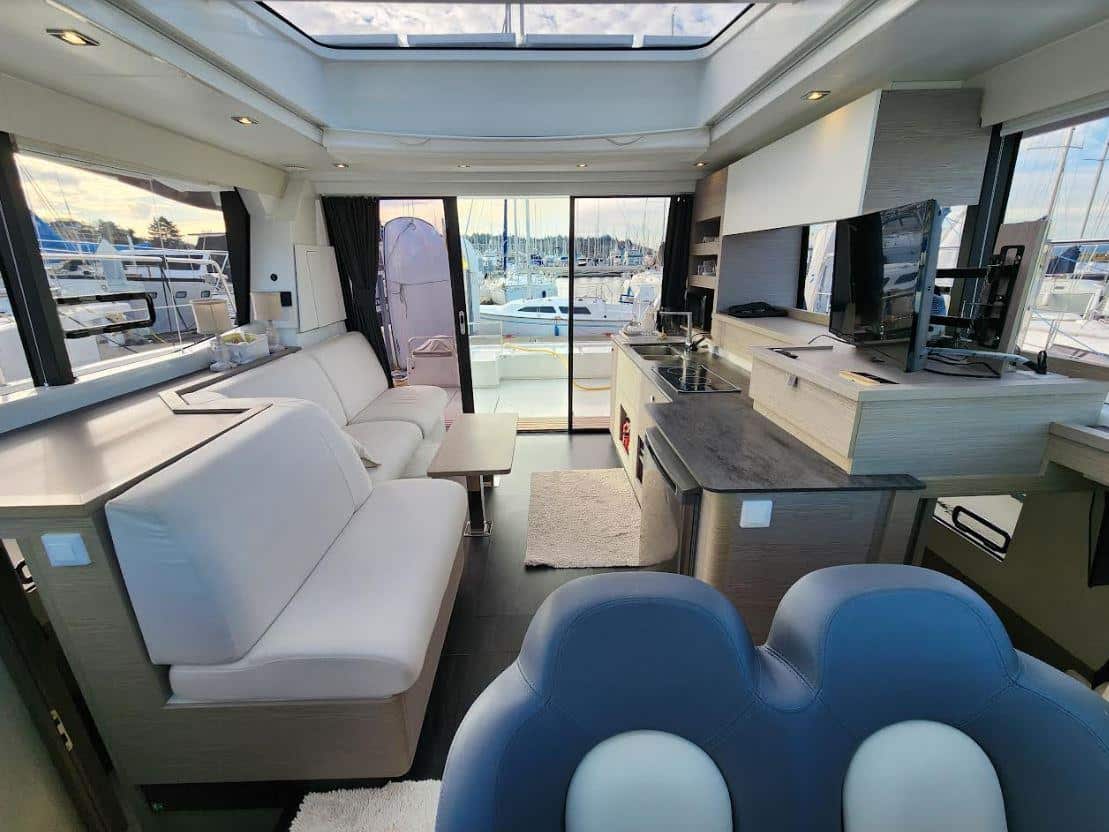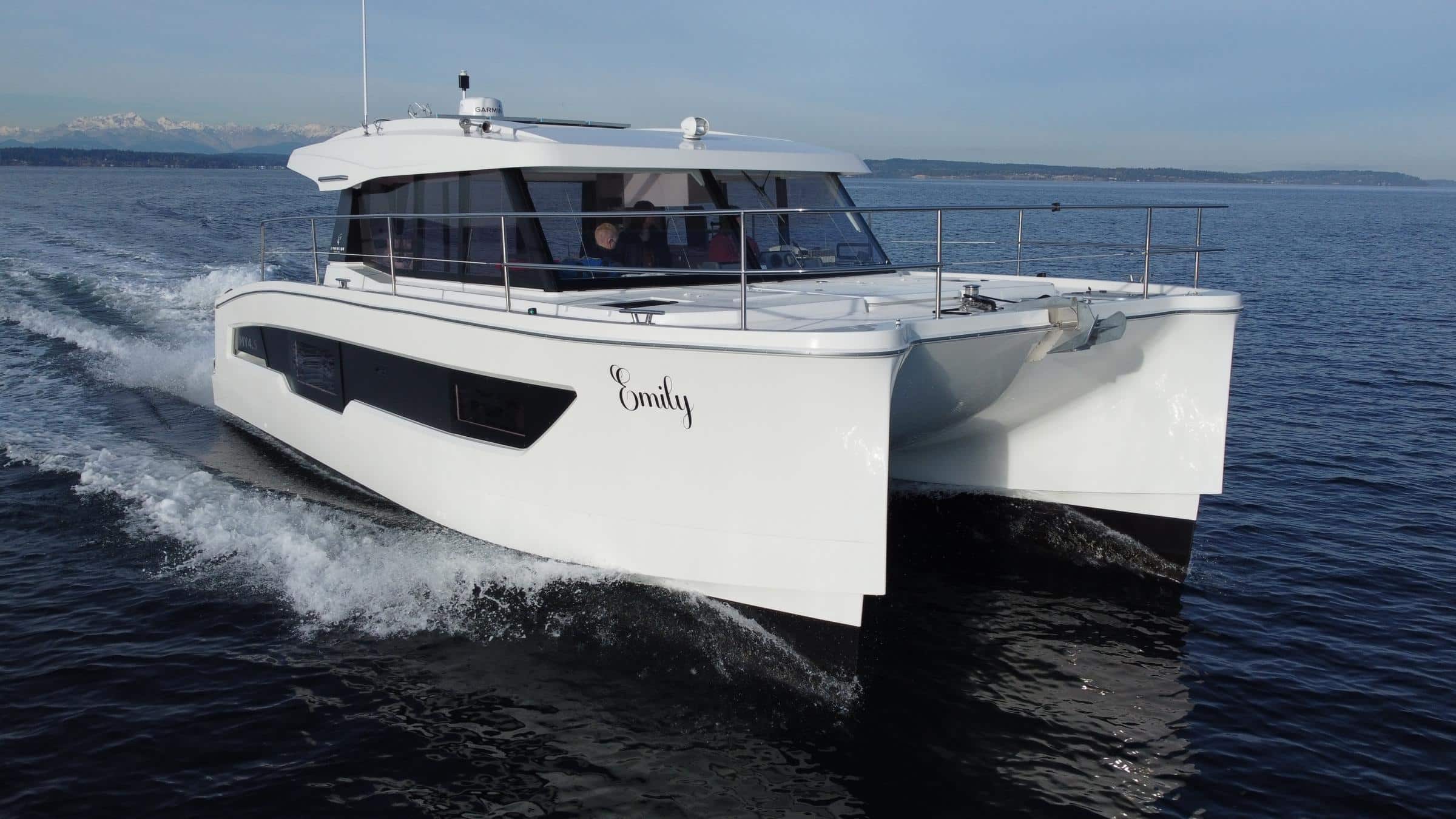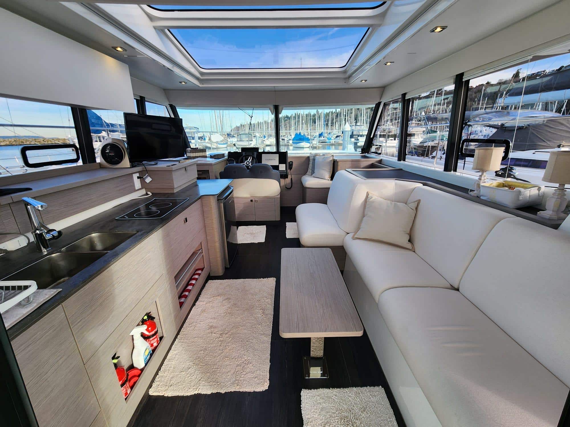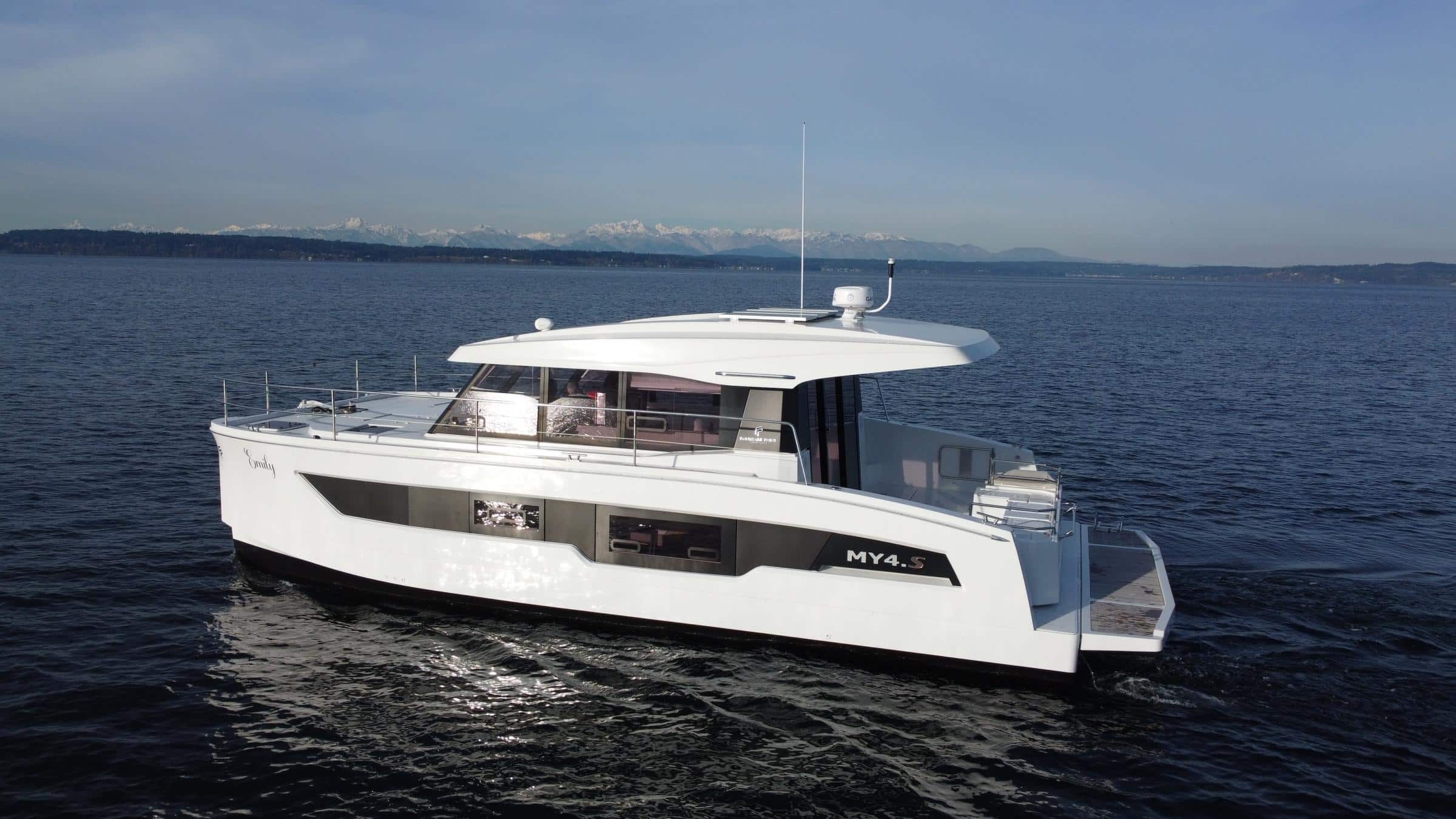 2021 Fountaine Pajot 36 MY4.S “Emily” is recent to the Windworks fleet. Feel at home in all the most beautiful destination in the Puget Sound. And within your wake, the powerful satisfaction of a rare and refined luxury. The oversized spaces aboard the MY4.S shake up all the preconceptions of monohull motor yachts of this size. Nearly a third more comfort, for a new and striking experience on real Motor Yacht catamaran hulls. Playing on the outside as well as on the inside, you will enjoy the exclusive pleasure of sovereign freedom. From the privacy of Emily, turning towards the magnetic horizon, nothing can stop your gaze.