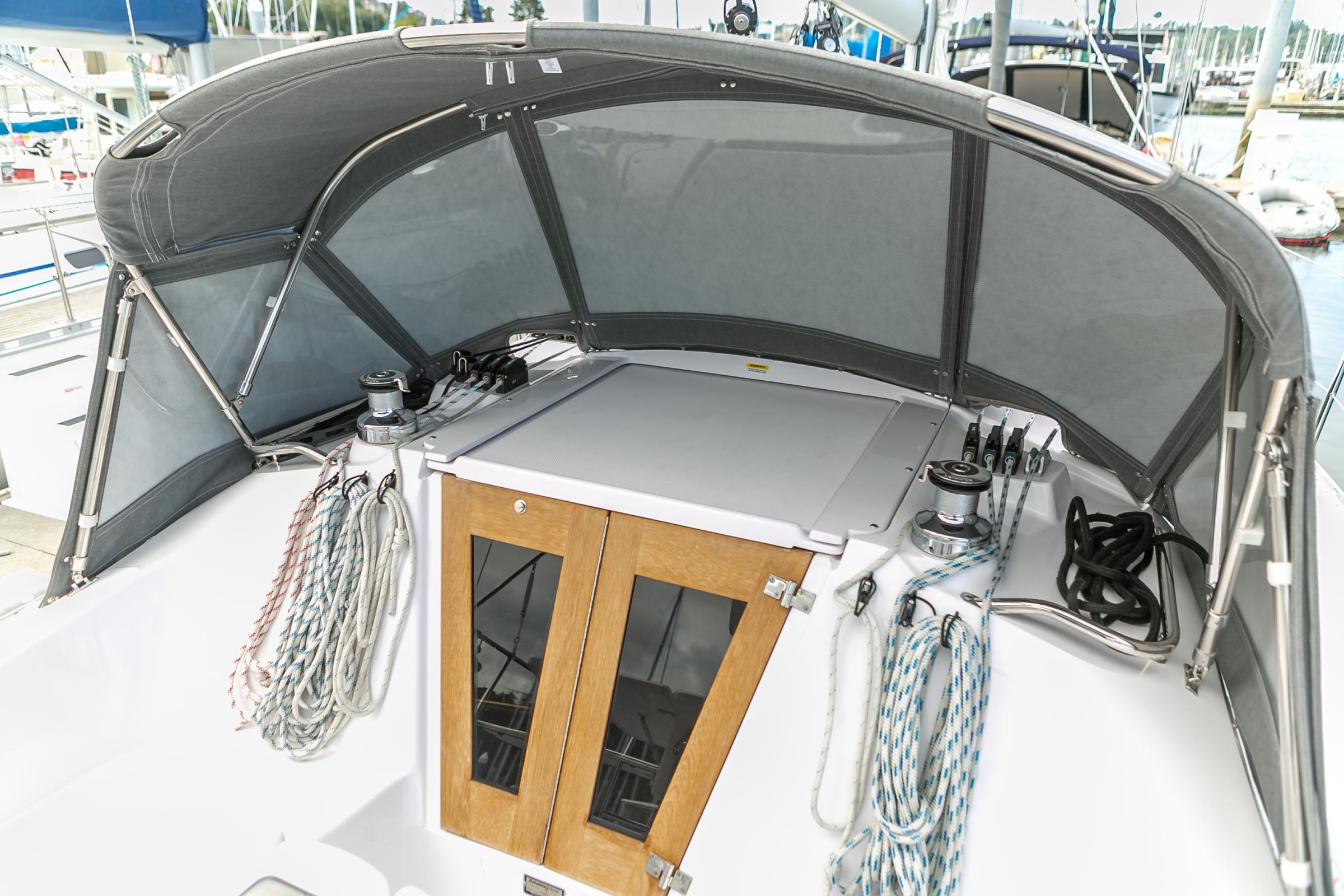 - All lines lead to cockpit with full Bimini and dodger connector