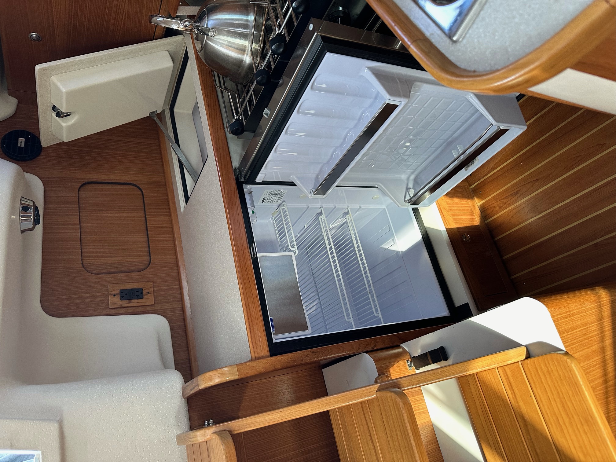 - The aft pushpit seats make the cockpit feel more spacious when at maximum capacity.