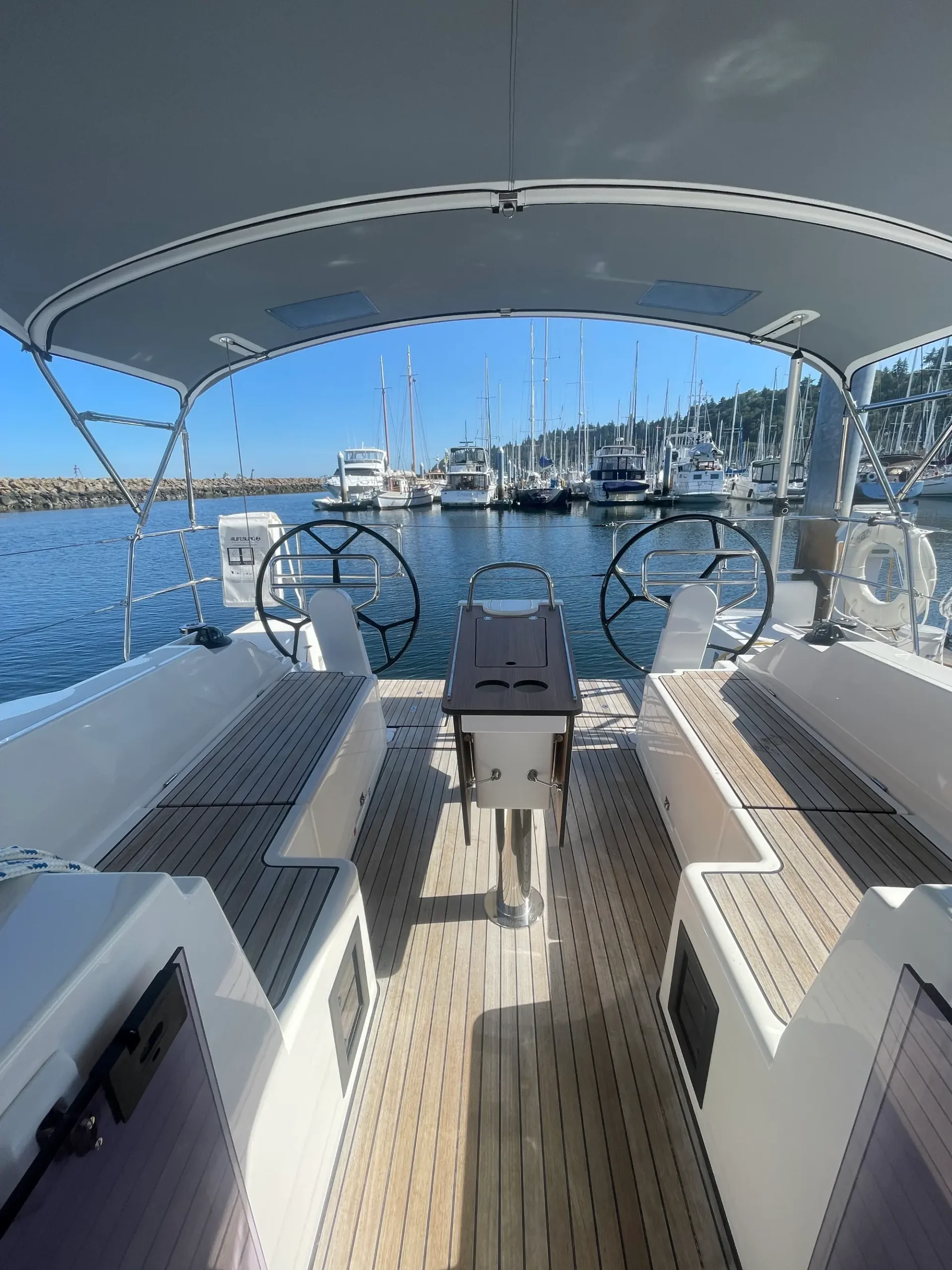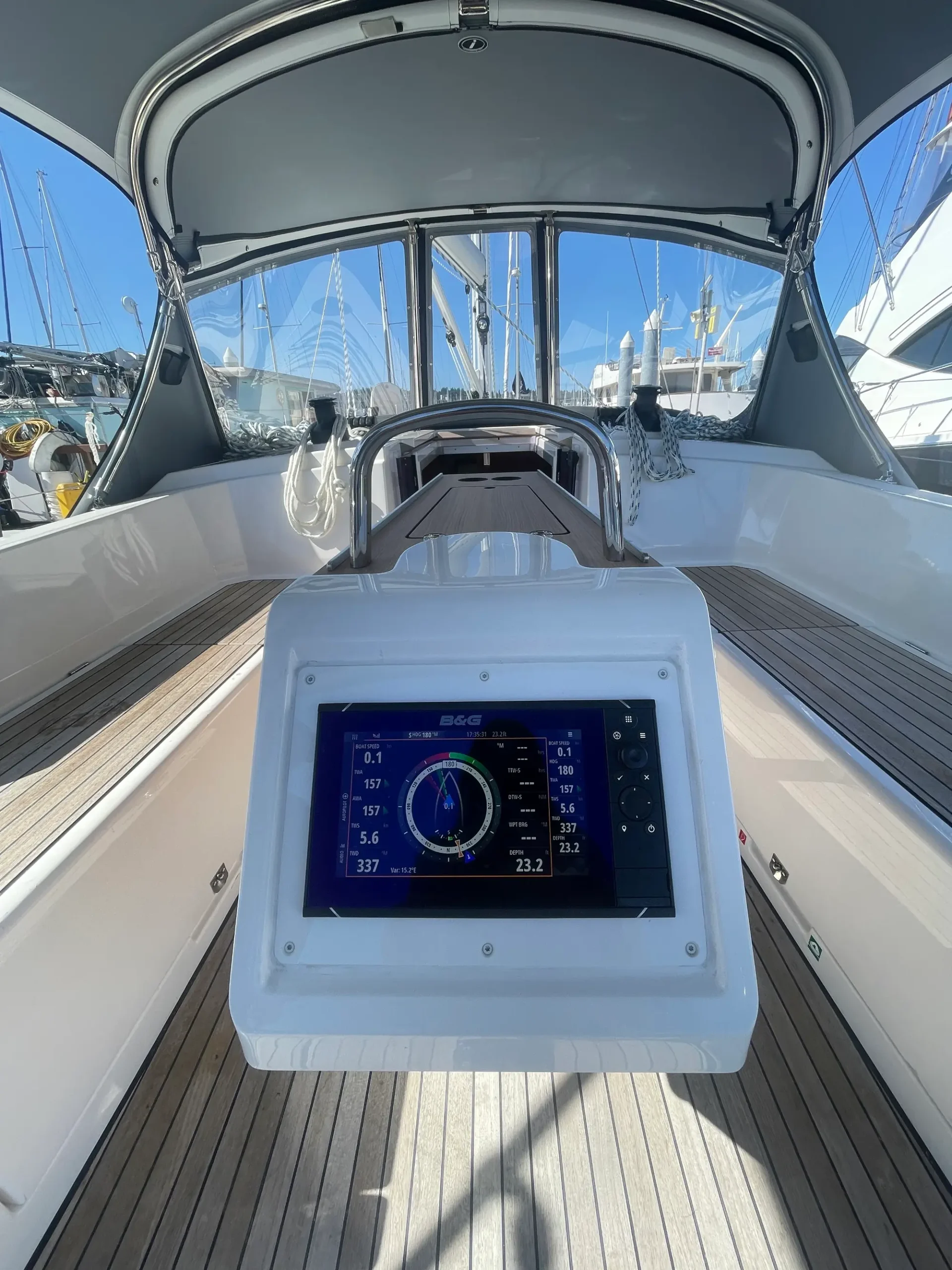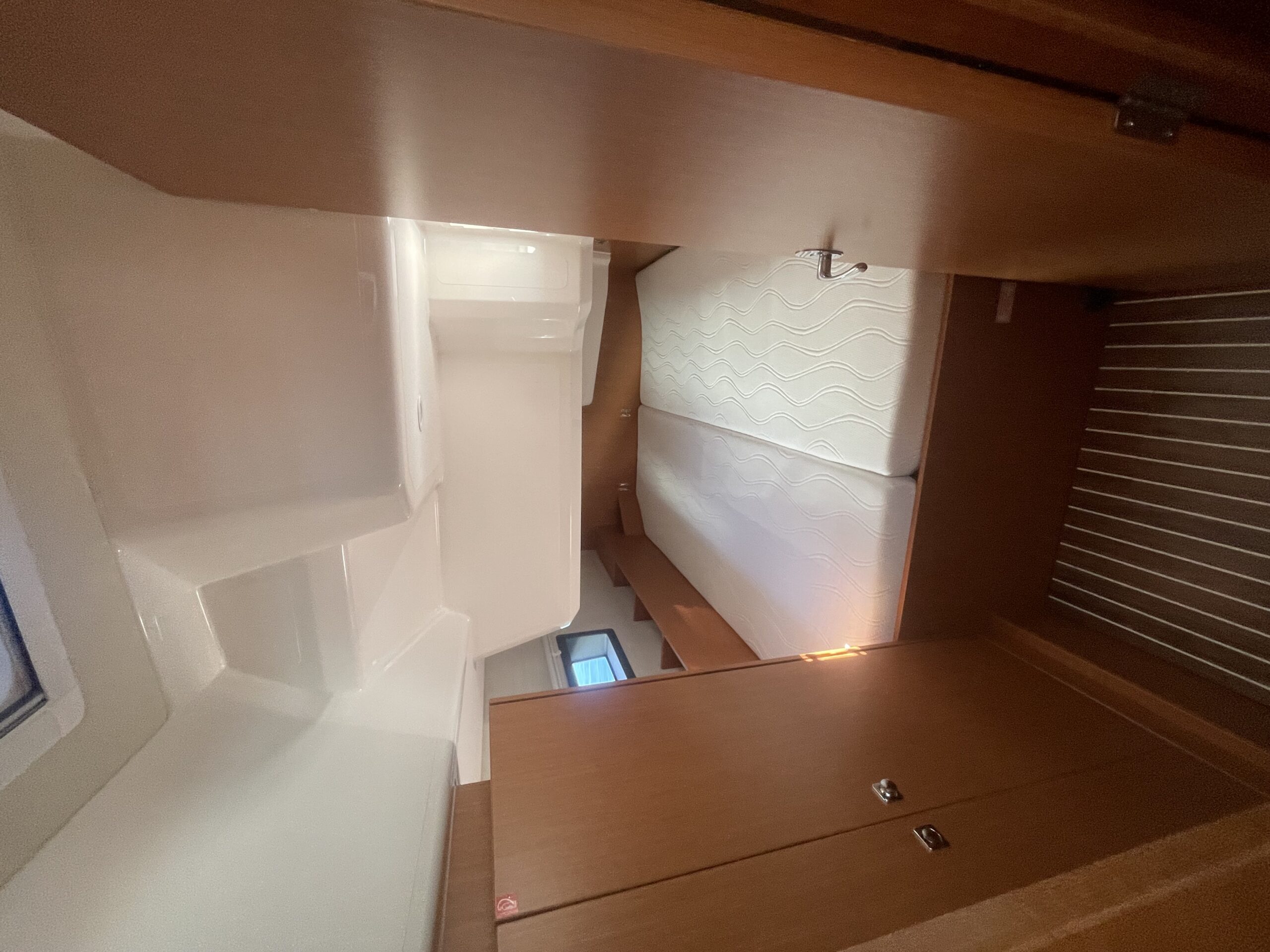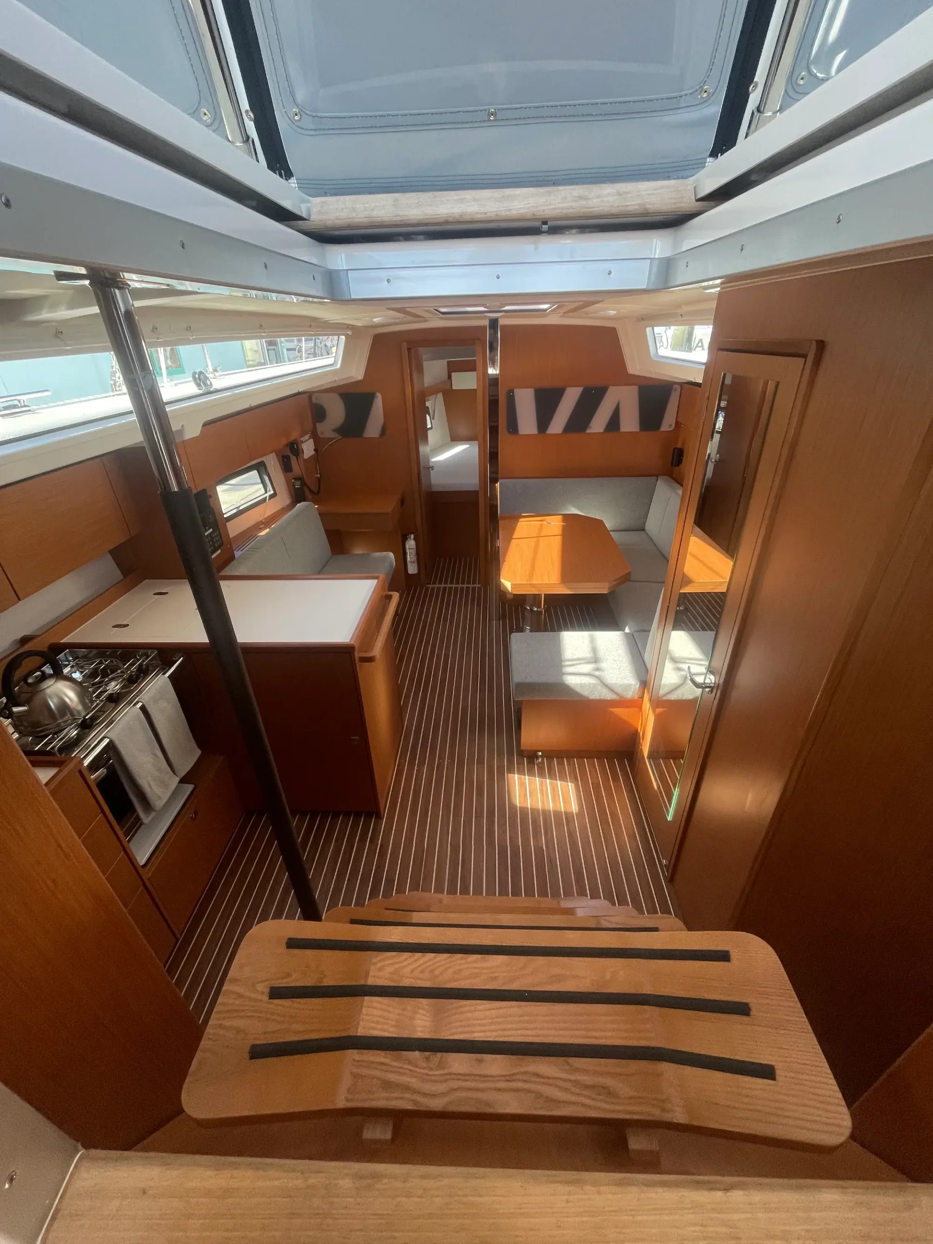 The Bavaria C38 combines perfect sailing characteristics, easy handling and maximum use of the interior space. Distinctive design features, such as the Bavaria V-bow and Chines at the stern, guarantee safe and fast sailing characteristics and an incredible amount of space below deck. The foredeck and side decks provide generous room for a sailing yacht of this size. The innovative hull design also opens up new dimensions below deck. The U-shaped seating area at the starboard side and the portside lounge bench easily cater for eight people during a cozy dinner.