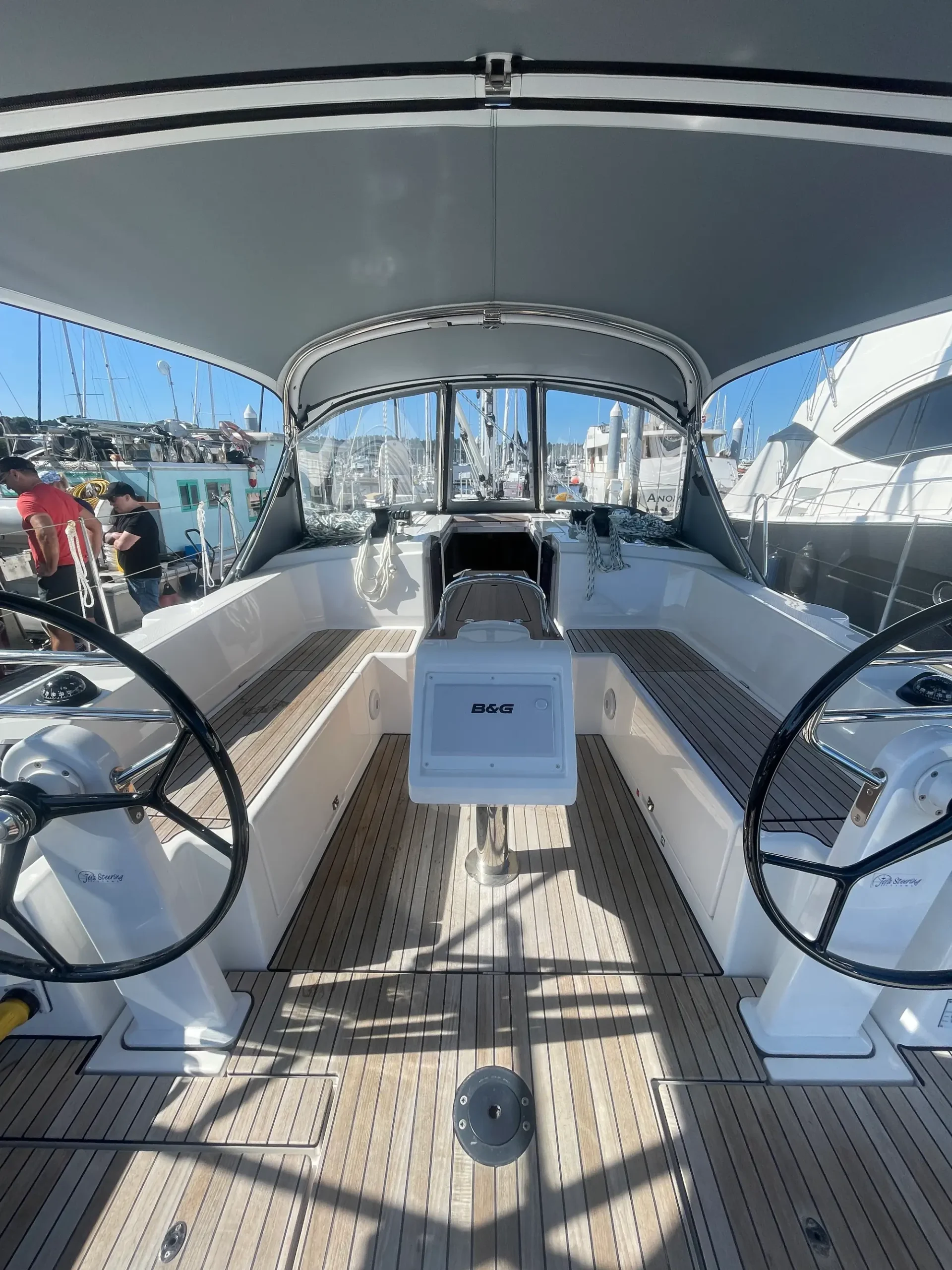 Bavaria Chines and Bavaria V-shaped bow: These striking hull design characteristics not only give Limelight more space below deck, they also provide unusual good sailing performance. The Chines ensure more stability, a longer waterline and therefore better performance and a more direct feeling when steering. But the prominent angle at the stern of the C38 has another advantage: it yields more space for the stern cabin, providing more comfort.