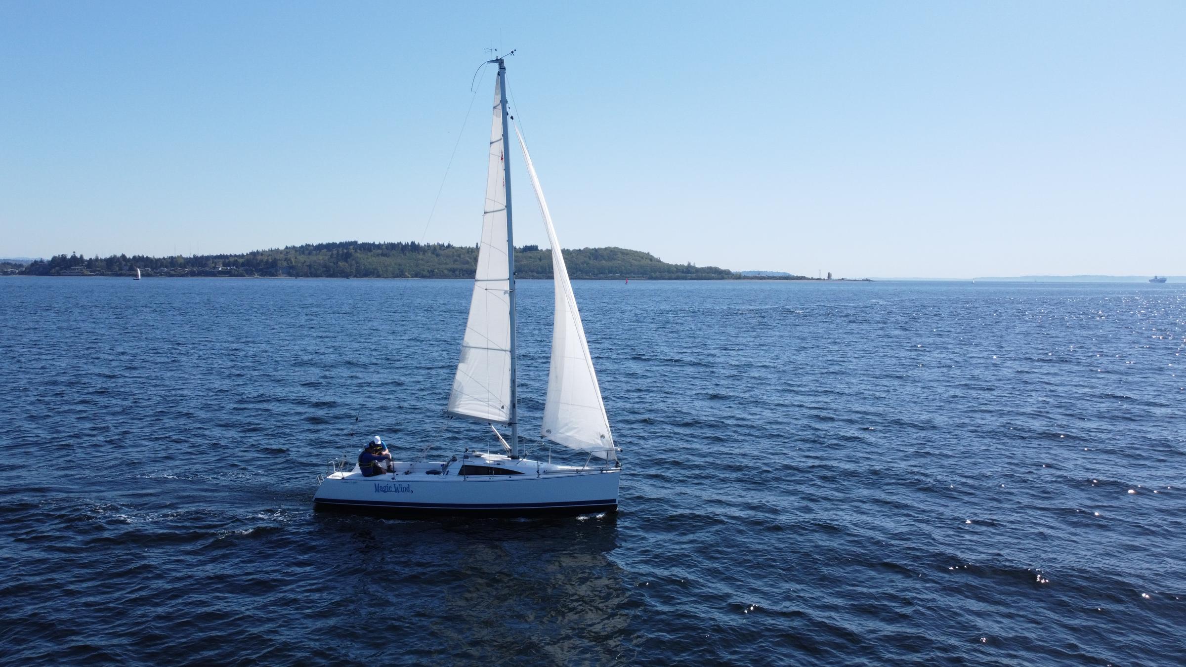 The Catalina 275 Sport just may be the boat you’ve been waiting to sail. Recapture the pure joy of sailing in a simpler but stylish boat that doesn’t require much effort or crew to get you out on the water. Pretty and fast boat will just be more fun to own! Full marine head, diesel engine, carbon fiber tiller. Skipper must have US Sailing Basic Cruising certification or equivalent to charter Magic Wind.